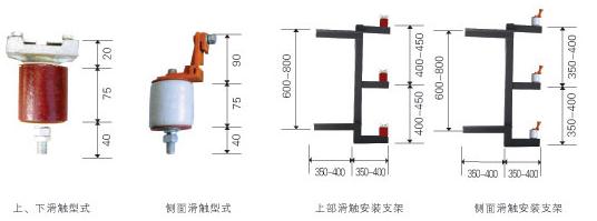 滑觸線的安裝支架一般為1.5-2米一個,特殊情況亦可采取加強措施,適當(dāng)擴大距離,三根滑觸線之間的相間距離為400mm,如為低阻抗滑觸線,相間距離可擴大到450mm。